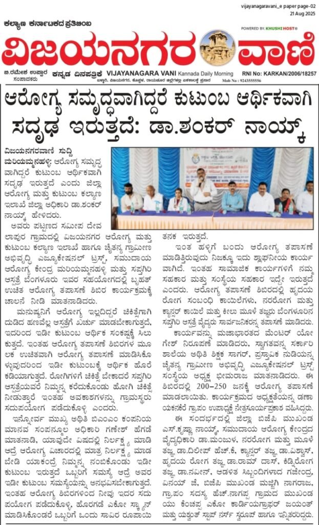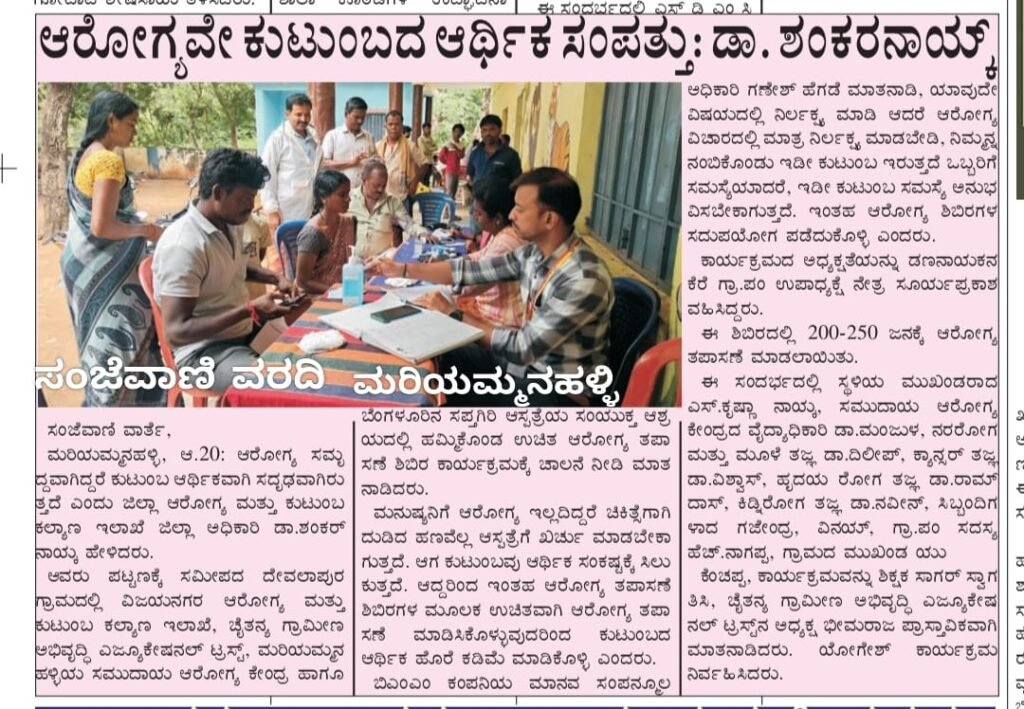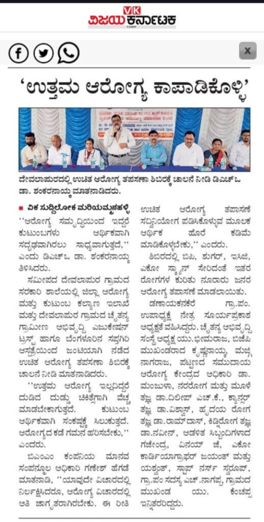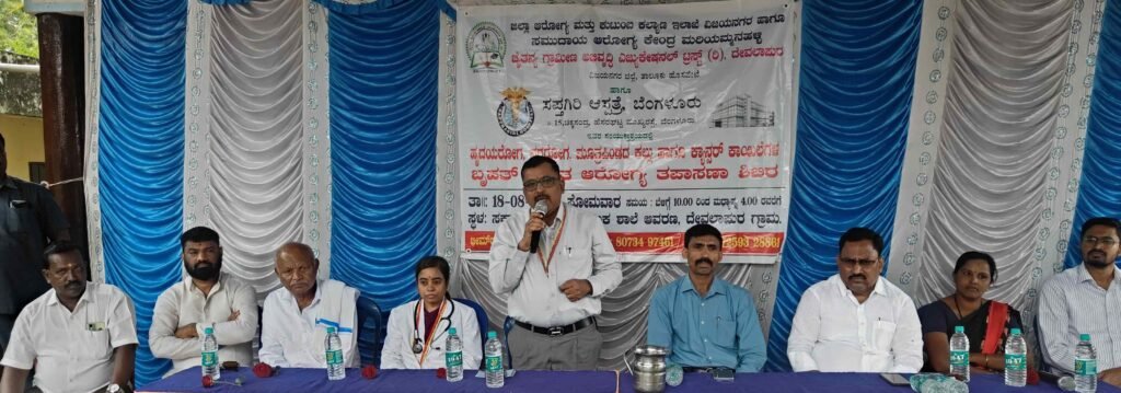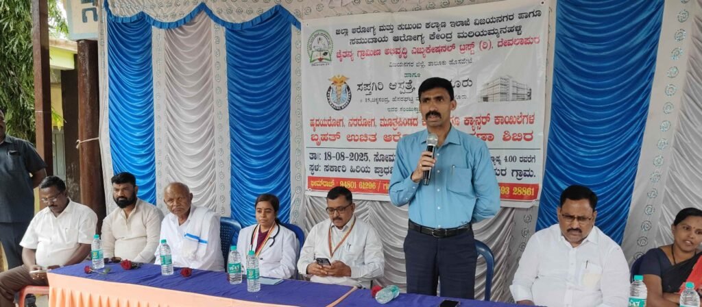 ದೇವಲಾಪುರ ಗ್ರಾಮದಲ್ಲಿ ಜಿಲ್ಲಾ ಆರೋಗ್ಯ ಮತ್ತು ಕುಟುಂಬ ಕಲ್ಯಾಣ ಇಲಾಖೆ ಹಾಗೂ ಮರಿಯಮ್ಮನಹಳ್ಳಿ ಆರೋಗ್ಯ ಸಮುದಾಯ ಕೇಂದ್ರ, ಚೈತನ್ಯ ಗ್ರಾಮೀಣ ಅಭಿವೃದ್ಧಿ ಎಜ್ಯೂಕೇಷನಲ್ ಟ್ರಸ್ (ರಿ) ಬೆಂಗಳೂರಿನ ಸಪ್ತಗಿರಿ ಆಸ್ಪತ್ರೆ ಇವರ ಸಹಯೋಗದಲ್ಲಿ ಜಿಲ್ಲಾ ಆರೋಗ್ಯ ಮತ್ತು ಕುಟುಂಬ ಕಲ್ಯಾಣ ಇಲಾಖೆ ಅಧಿಕಾರಿ ಡಾ.ಶಂಕರ್ ನಾಯ್ಕ್ ಬೃಹತ್ ಉಚಿತ ಆರೋಗ್ಯ ತಪಾಸಣೆ ಶಿಬಿರ ಉದ್ಘಾಟಿಸಿ ಮಾತನಾಡಿದರು.