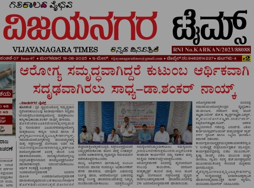ದಿನಾಂಕ: 18/08/2025 ರಂದು ಡಣಾಯಕನಕೆರೆ ಗ್ರಾಮ ಪಂಚಾಯಿತಿ ವ್ಯಾಪ್ತಿಯ ಬೃಹತ್ ಉಚಿತ ಆರೋಗ್ಯ ತಪಾಸಣೆ ಶಿಬಿರ ಉದ್ಘಾಟಿಸಿದ ಜಿಲ್ಲಾ ಆರೋಗ್ಯ ಮತ್ತು ಕುಟುಂಬ ಕಲ್ಯಾಣ ಇಲಾಖೆ ಅಧಿಕಾರಿ ಡಾ.ಶಂಕರ್ ನಾಯ್ಕ್.
